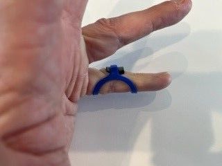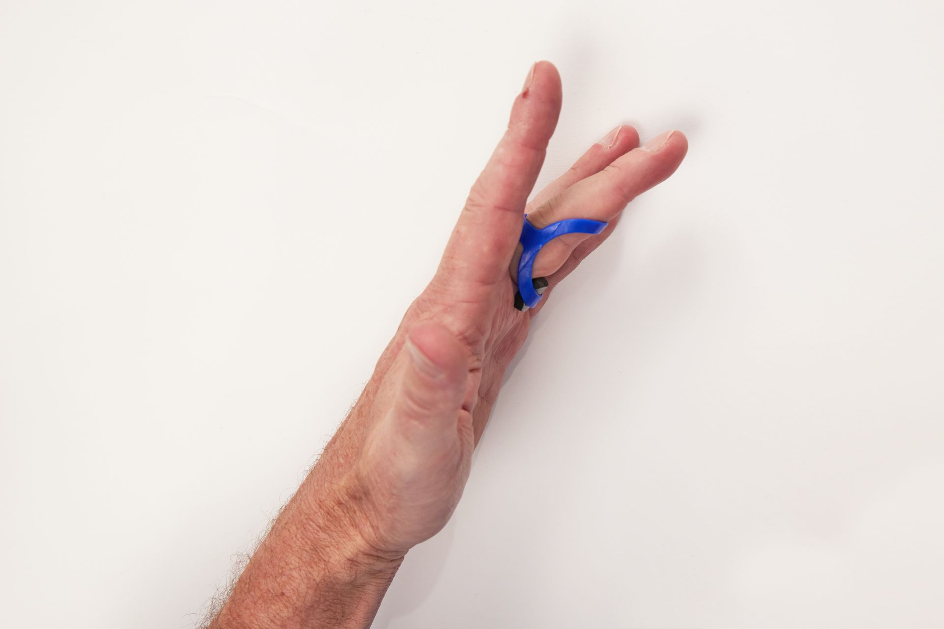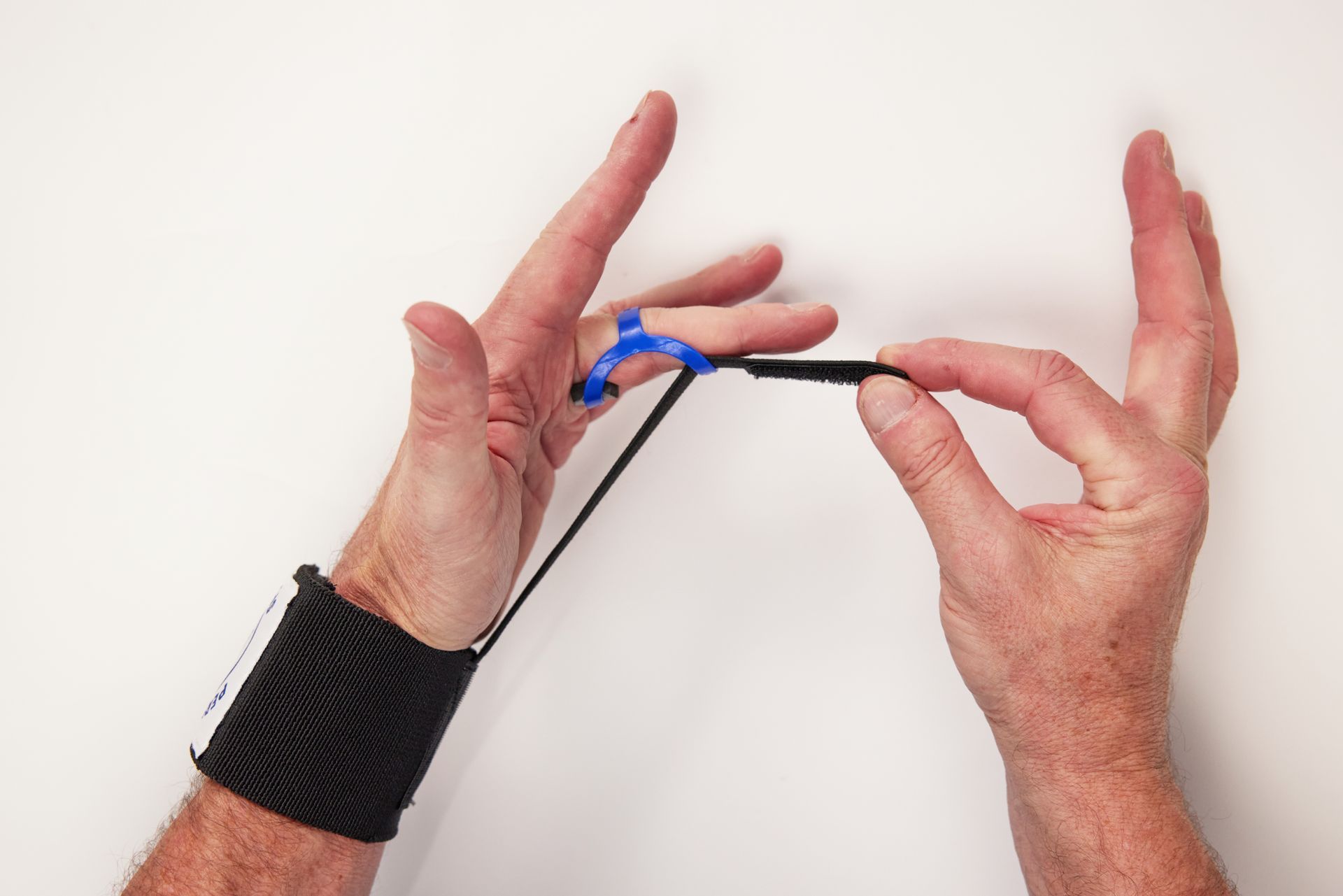 - Flex the finger knuckle (MCP) to 90 degrees and attach the Velcro tether to itself to hold the MCP flexed.