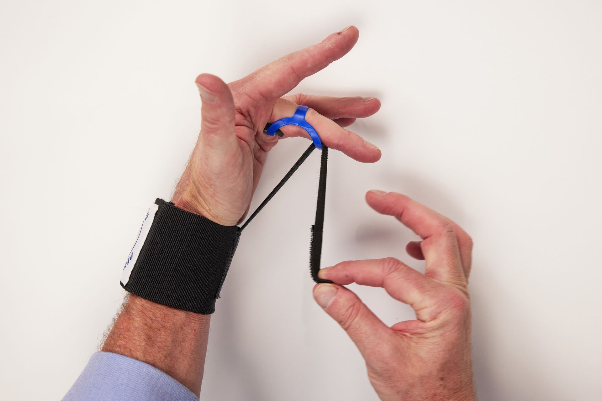 - Apply the wrist strap and pass the tether under the far end of the splint.